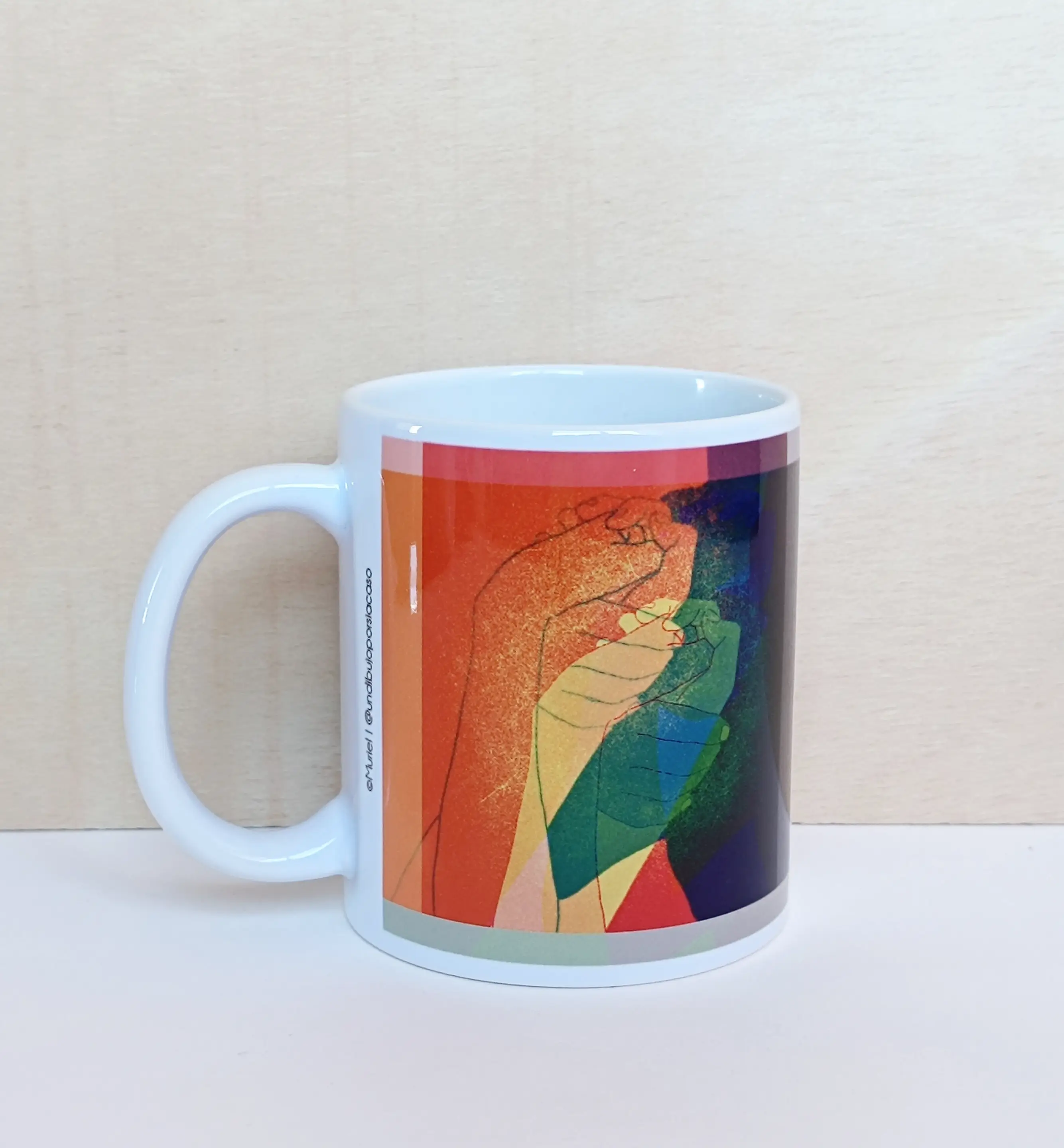 Taza de cerámica, de 11 oz (325 ml), blanca y con ilustración en ambos lados.