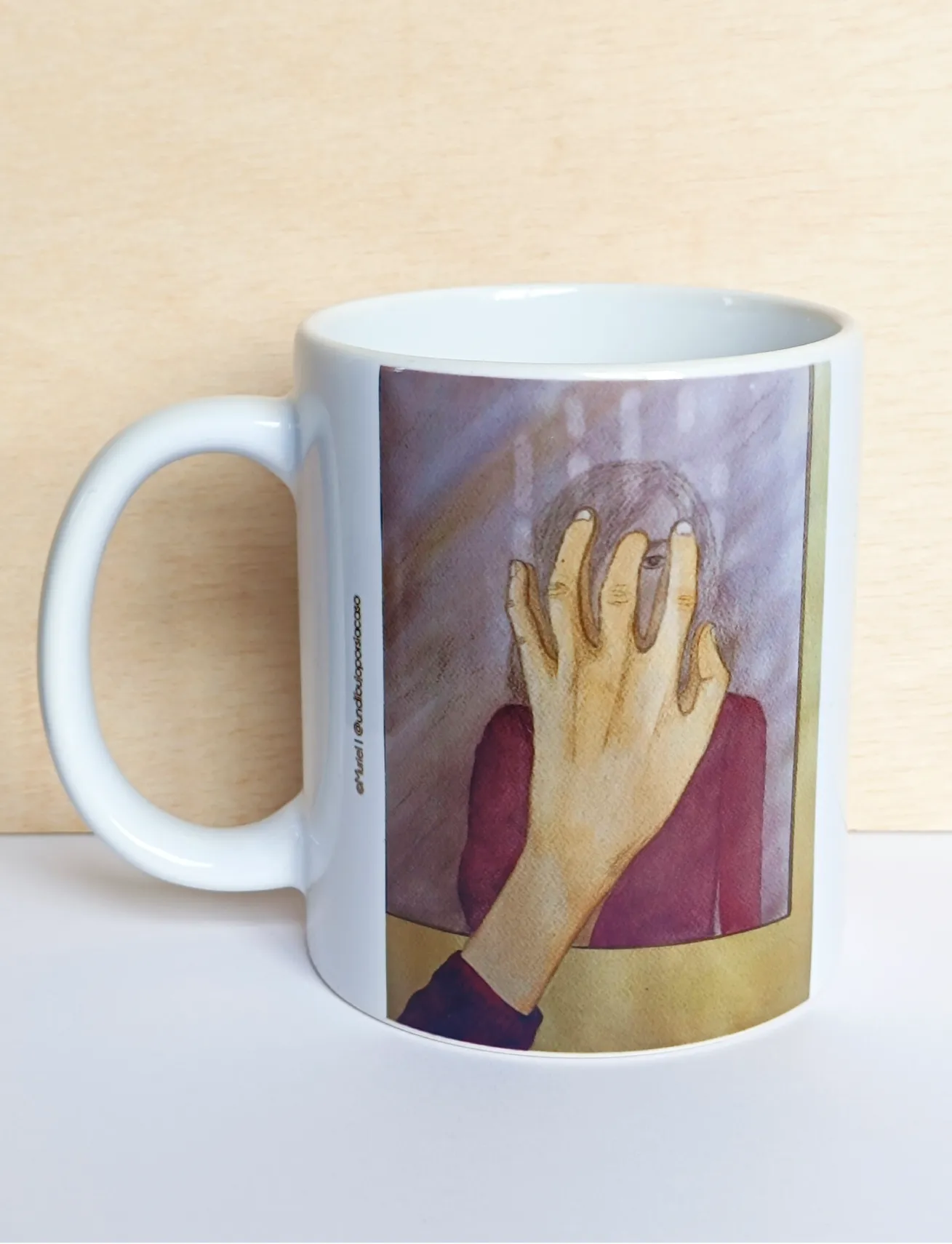 Taza de cerámica, 11 oz (325 ml), blanca y con ilustración en ambos lados.